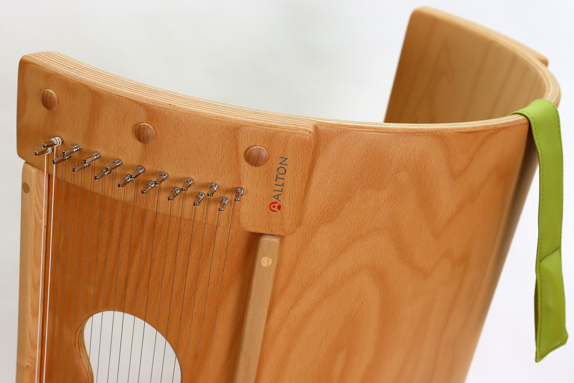 Der Klangschaukelstuhlkorpus aus Buchenholz ist geölt.